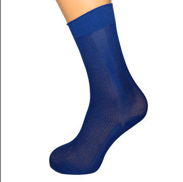 Blue Ribbed Mid Calf Nylon Socks Images |